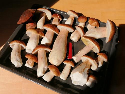 in der Schweiz haben die Pilze vom 1. bis zum 10. jeden Monat Schonzeit, deshalb blieben einige Steinpilze und Rotkappen stehen.