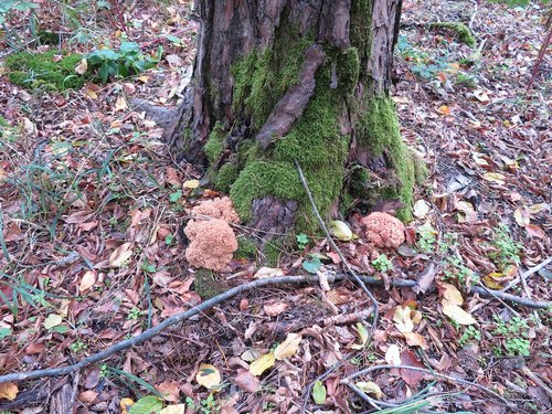 Ich entdeckte Amethystschuppige Pfifferlinge, schöne Lachsreizker, Rötliche Gallerttrichter sowie ein junges Geschwisterpaar vom Fichtensteinpilz.