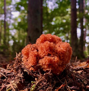 Foto: Diese schönen Krausen Glucken hat Bernd im Lußhardtwald bei Kronau gefunden. Er hat sich aber auch auf dem Felde der Spurensicherung betätigt und konnte feststellen, dass es derzeit viele frische Schnittstellen gibt. (Foto © Bernd)