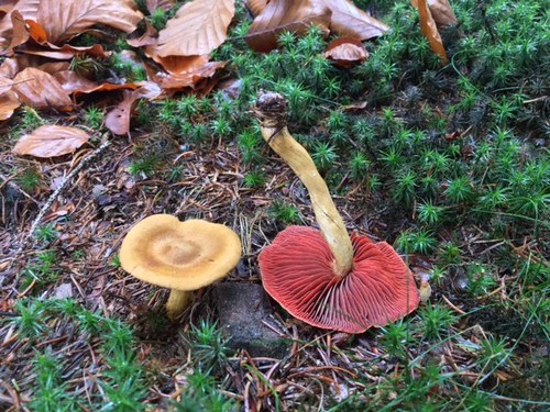 einige Fichtenreizker sowie über einen Flockenstieligen Hexenröhrling.
