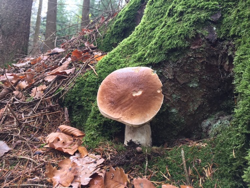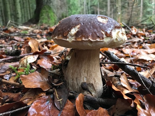 Foto: Ob es schon der Letzte für dieses Jahr war? Michael fand neben diesem nur noch einen weiteren Steinpilz. Die klassische Pilzsaison ist vorbei, das Pilzjahr geht in die Periode der - wenigen - essbaren Winterpilzarten über. (4 Fotos © Michael)