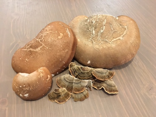 Foto: Diese drei Birkenporlinge waren von einwandfreier Qualität. Für einen Wintertee nahm Thomas außerdem einige Schmetterlingstrameten mit. (4 Fotos © Thomas)
