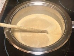Topf nochmals auf den Herd stellen und einmal kurz aufkochen lassen. Vom Herd nehmen, restliche 20g Butter unterrühren und die