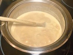 8 Fotos: Die Schritte zur köstlichen Rüblingscrèmesuppe in Fotos: Die Hinzugabe von Salz, Pfeffer und Muskat (Reihe 1), von Weißwein und Fleischbrühe (Reihe 2), von Sahne (Reihe 3) sowie das Einrühren von Butter und das Schaumigschlagen (Reihe 4) führen zum köstlichen Ergebnis.