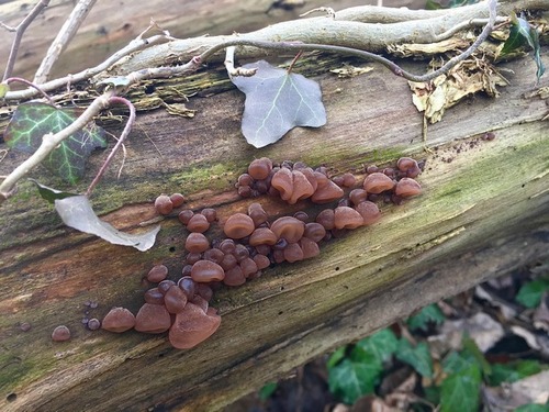 Foto: Diese Judasohren wollen aufs Neue erwachen. Im Schnee hatten sie zu fruktifizierten begonnen, um bei der Kälte ihr Wachstum vorübergehend einzustellen.