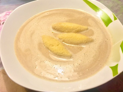 Foto: So herrlich kann der Pilzwinter auf dem Tisch aussehen! Thomas hat ein wirklich feines Winterrüblings-Crèmesüppchen zubereitet und um drei Pastinaken-Grießnocken bereichert. Ein wahrer Winterpilz-Rezeptklassiker, der als Vorsuppe selbst auf der festlichen Tafel alle Ansprüche erfüllt. (10 Fotos © Thomas)