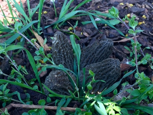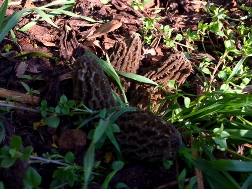 der Arbeit wieder in die Morchelgärten, wo, wie die Fotos schön belegen, einiges los war. Herrliche Speisemorcheln waren zu finden (Foto rechts)! Die