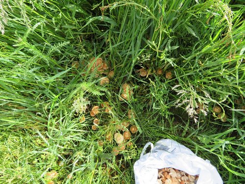Auf dem Rückweg ernteten wir noch einige Judasohren (Foto rechts). Ich begab mich dann noch auf meine hiesige Pferdekoppel. Dort sammelte ich noch auf die Schnelle einige Nelkenschwindlinge ein. Diese sind dort momentan im Tausenderbereich vertreten. Alle durchweg von bester Qualität.