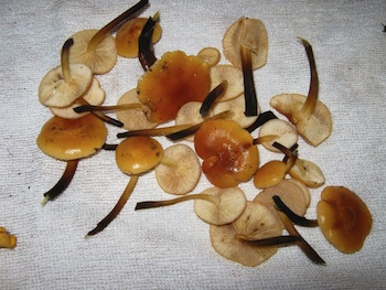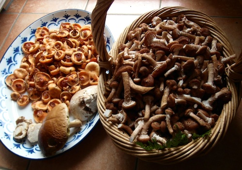 Foto: Die Steinpilze treten ab, die Fichtenreizker und Hallimasch hingegen an. Da Ernst keine Reizker mag, hat er sie verschenkt. Die Hallimasch blieben für den Wintervorrat. (Foto © Ernst)