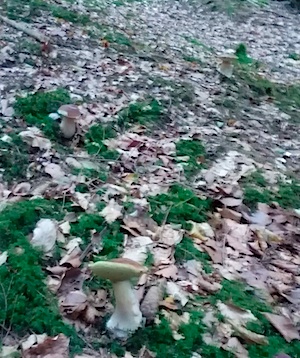Foto rechts: Da stehen sie in Reih' und Glied, die herrlichen Steinpilze. Drei sind es mit Sicherheit, vermutlich sogar vier. In diesen Tagen ist Rainers Schurenwald mit schönen Steinpilzen am Drücker. Zeit war's! (2 Fotos © Rainer H.)