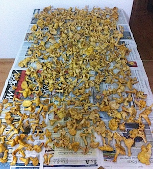die Flut an Pfifferlingen hält nach wie vor an, was an meinem Foto (rechts) gut erkennbar ist. Viele junge Triebe deuten an, dass es auch nächste Woche noch reichlich Pfifferlinge gibt. Ich bin sehr gespannt, wie sich das warme Wetter in den kommenden Tagen auf die Pilzvorkommen auswirken wird. Der Dauerregen vom Freitag sollte genug Feuchtigkeit für eine Woche bieten.