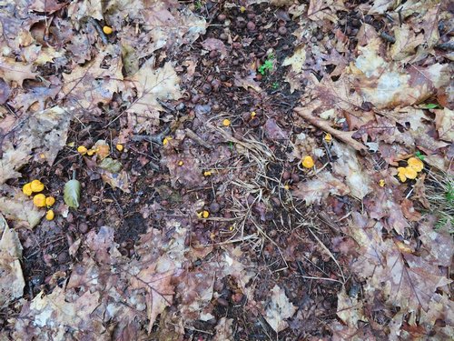Foto: Die Pfifferlinge sind noch winzig, doch es wird. Den einen oder anderen hat Michael schon mitgenommen.