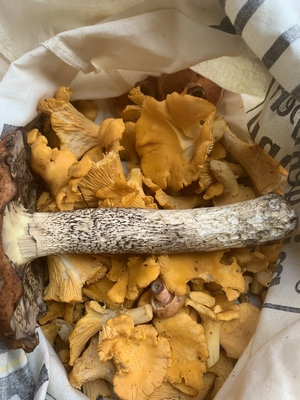 Nun, die sollte es nicht geben, stattdessen fand ich wunderschöne Pfifferlinge, eine Rotkappe und Blutreizker. Auch darüber freute ich mich sehr.