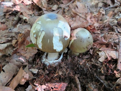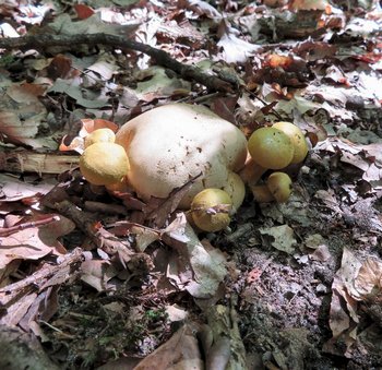 Außerdem gesehen habe ich Fransige Wulstlinge, die ersten Grünen Knollenblätterpilze und Schmarotzerröhrlinge. Letztere scheinen dieses Jahr ebenfalls stark vertreten zu sein, da ich sehr viele befallene Boviste entdeckte.