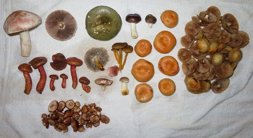 Foto: Michaels Anteil aus dem Gesamtfund war diesmal übersichtlich. Es fällt aber auf, dass ihm daran lag, möglichst viele Pilzarten zu bekommen.