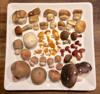 Dafür haben wir reichlich andere Schätze gesammelt. Kuhmäuler, Kupferrote Gelbfüße, Frauentäublinge, Lachs- und Fichtenreizker, Butterpilze, Maronen, Trompetenpfifferlinge, Krause Glucken, einen Perlpilz und einen Anischampignon, Stockschwämmchen, Hallimasch, Rote Stoppelpilze, Pfifferlinge und Flockis.