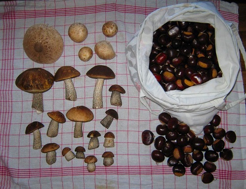 Foto: Welch ein schönes Herbstmotiv von Michael mit Pilzen und Esskastanien! Maroni können - besonders nach Pilzgerichten - als Dessert eine kulinarische Krönung sein. Mehr dazu weiter unten.