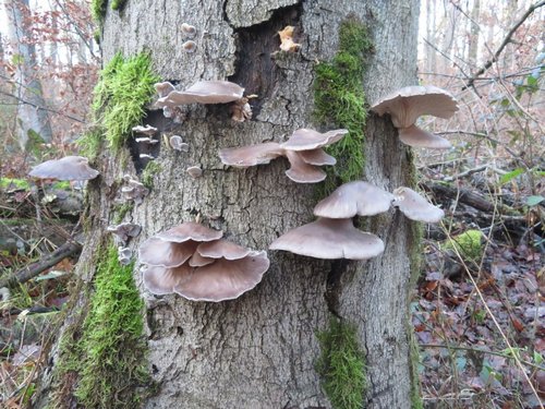 Foto: Das feuchtkalte Wetter lässt auch die Austernseitlinge weiterhin sprießen. Zur Freude von Andreas, der sie diesmal alle mitnahm.