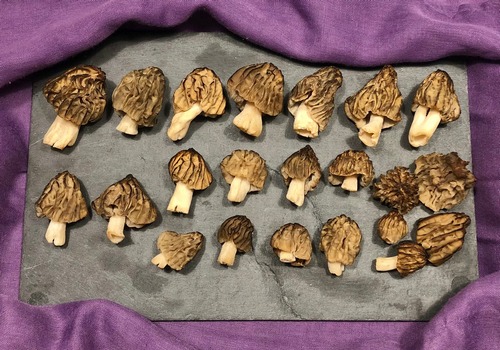 Wieder dort, hatten wir am Freitag, den 1. April, mehr Glück. Im Schneeregen fanden wir weitere elf Morcheln. Das Foto oben zeigt die gesamte Tagesausbeute.
