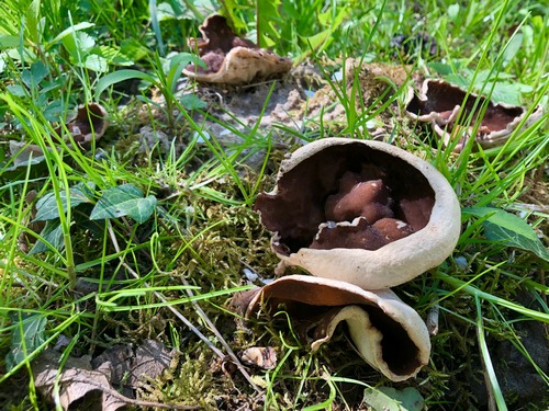Foto: Hier wachsen gleich viere Morchelbecherlinge auf engstem Raum.