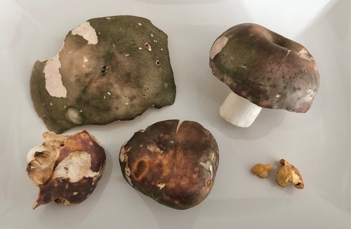 Foto: Nicht die große Welt von Pilzen, aber wohlschmeckende Beigabe zum Abendbrot waren die vier Frauentäublinge und die zwei - riesigen - Pfifferlinge gewiss.