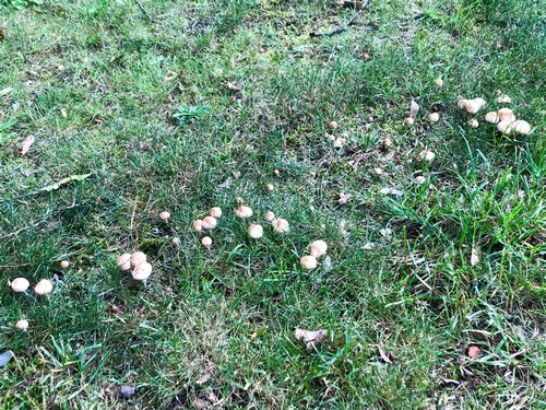 Und ich hatte den richtigen Riecher. An all meinen Stellen beginnen sie zu wachsen. Teilweise stehen sie sogar schon küchentauglich abholbereit im Gras. Allerdings nahm ich nur gut zwei Hände voll davon mit (Foto rechts), da noch weit über ein Kilogramm auf Vorrat in unserem Gefrierfach lagert.