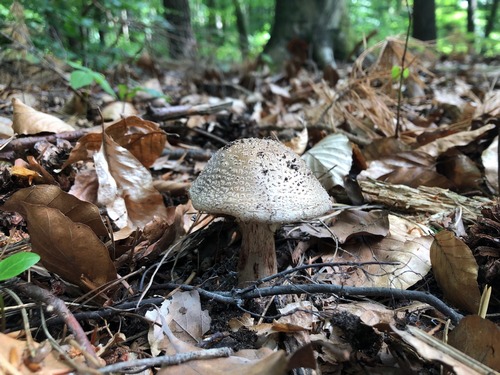 Foto: Auch dieser Perlpilz war bereits im gehobenen Rentenalter. Nichts mehr für die Pfanne.