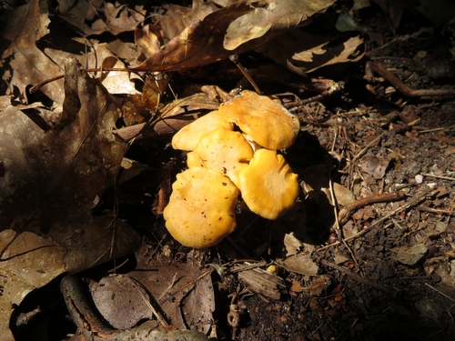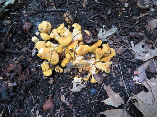 Foto: Hier wachsen sechs erntereife Pfifferlinge büschelig zusammen.