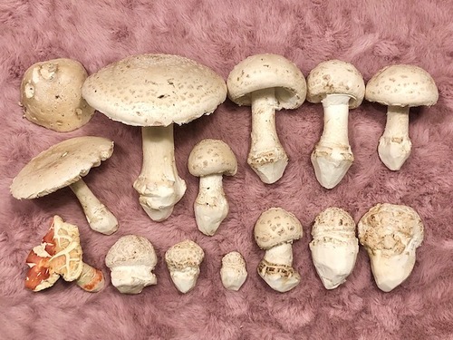 Da der Fransige Wulstling gerade bei den momentan herrschenden hohen Temperaturen recht schnellwüchsig ist, habe ich mit dem heutigen Freitag genau den richtigen Zeitpunkt zur Ernte erwischt. So konnte ich einige schöne Exemplare einsammeln, wobei ich aber noch viele weitere Winzlinge zum Weiterwachsen stehen gelassen habe. Im Gegensatz zum Perlpilz habe ich den Fransigen Wulstling auch nur selten so stark vermadet vorgefunden, was ihn nochmal attraktiver macht.
