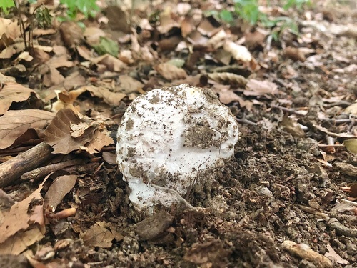 Einen Weißen Riesen nahm ich dann aber doch mit, kein Champignon, sondern einen Riesenbovist, der für diese Wetterverhältnisse in einer Topform dastand, und das sogar ganz ohne Made. Für vier dicke Schnitzel wird er allemal reichen.