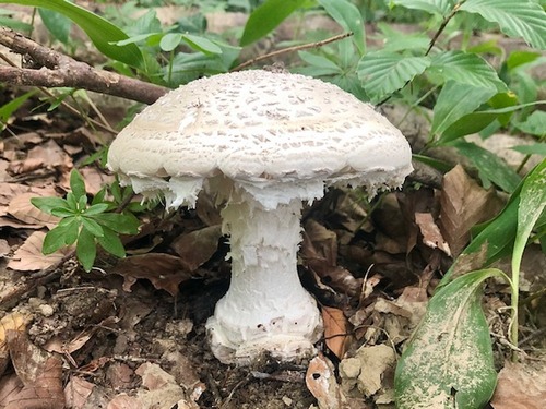 Foto: Der Fransige Wulstling ist noch jung und kündigt einen Schub an. Die wohlschmeckende Art liebt kalkreiche Böden und wächst im Laubwald.