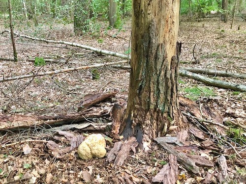 Einen kleinen Bovist in Tennisballgröße habe ich stehen gelassen; er darf noch ein wenig wachsen.