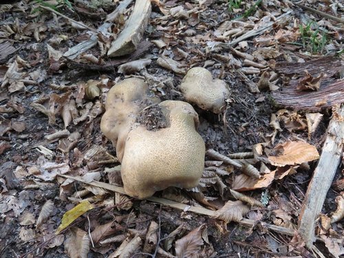 Foto: Ein paar Pilze fand Michael auch, allerdings nichts zum Mitnehmen. Diese ohnehin ungenießbaren Wurzelnden Bitterröhrlinge sind schon sichtlich von der Hitze und Trockenheit geschädigt.