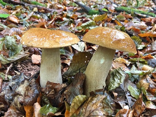 Foto: Die Hüte der Sommersteinpilze glänzten im starken Regen, so dass die Pilze gut erkennbar waren. Im Laufen sackten Thomas und Andreas sie ein.