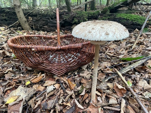 Foto: Der Korb als Vergleichsobjekt lässt ahnen, wie groß der Parasol war. Das gab sicher einige schöne Waldschnitzel zum Abend im Hause Heiko.