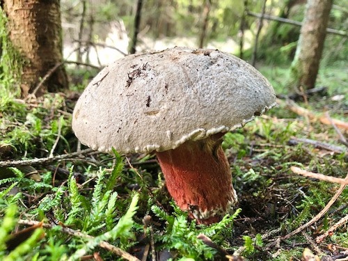 Foto: Er lebt auf schön anzuschauendem Fuß, der grau bedachte Schönfußröhrling.