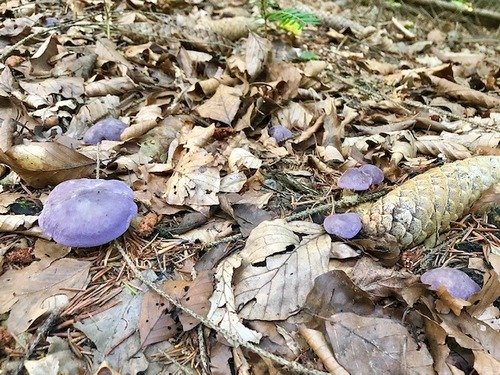 Mit dem schönen Kontrast zwischen ihren blauvioletten bis veilchenblauen Hüten und ihren weißen bis cremefarbenen Lamellen sind sie gut zu erkennen. Auch sie durften im Wald stehen bleiben. Somit sind es zwei Pilzarten, die die Schönheit sogar in ihrem Namen tragen.