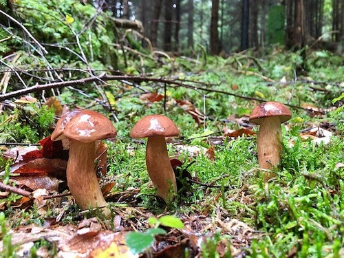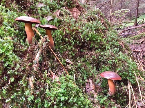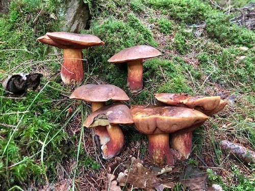 Im Wald bleiben durften hingegen Arten wie der Graue Lärchenröhrling, Netzstielige Hexenröhrlinge, Mehlräslinge, Zweifarbige Lacktrichterlinge, Ockerbraune Trichterlinge, Krause Glucken und viele weitere Rotfußröhrlinge.