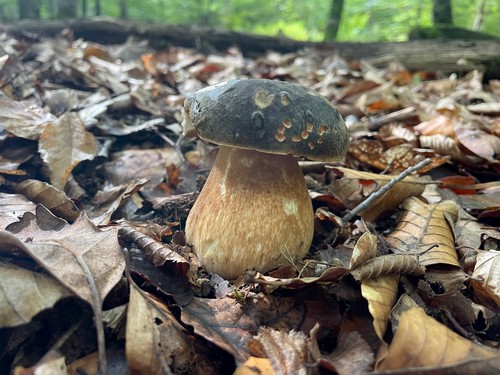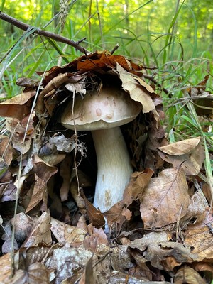 Er schreibt: "Außerdem habe ich kleine Exemplare des Gelben Hohlfußröhrlings entdeckt, allerdings noch so klein, dass sie noch wachsen dürfen und ich das Foto nachreiche. Bei den Steinpilzen warte ich hier immer noch auf den Durchbruch. Vereinzelt finde ich schöne Exemplare, aber für eine Mahlzeit für die Familie reicht es noch nicht.