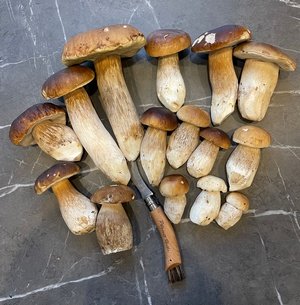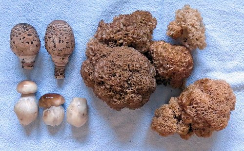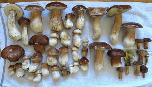 Foto: Die Steinpilze und Sommersteinpilze wachsen jetzt auch bei Hochstetten. Dazu gab es für Michael einige Filzröhrlinge und Ziegenlippen. (6 Fotos © Michael)