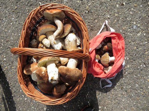 Ansonsten bekamen meine Mittsammler den Korb voller Steinpilze und der Rotkappe und ich nahm mir nur den kleinen Anteil in der roten Stofftasche.
