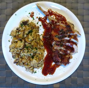 es war mal wieder Zeit für ein exklusives Gericht: Iberico-Rack an Steinpilzrisotto (Foto rechts)!