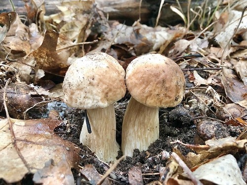 Foto: So etwas findet man doch gerne in seiner Mittagspause: zwei Fichtensteinpilze im Laub.