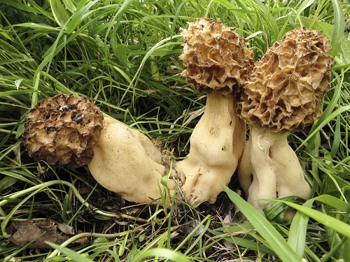 Foto: Bei näherem Hinsehen erwiesen sich die drei Riesen leider schon als nicht mehr essbar. Morcheln in diesem Alter neigen zu Verwesungsgestank.