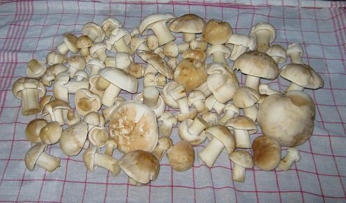 erntete ich im Grünstreifen des hiesigen Friedhofes einige Maipilze.