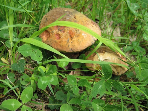 Gefunden haben wir einen jungen Sommersteinpilz, einen Frauentäubling, einen Rotfußröhrling, einige Schwarzblauende Röhrlinge und am Wegesrand viele Netzstielige Hexen.
