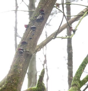 Foto: An den alten toten Holunderstämmen plustern sich bei der Feuchtigkeit und den milden winterlichen Temperaturen die Judasohren richtig schön auf. (5 Fotos © Michael)