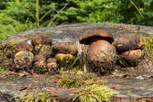 Foto: Gleich eine ganze Gesellschaft Netzstieliger Hexenröhrlinge hat Fritz mit seiner Enkelin im Bodenseekreis entdeckt. Es ist der erste gemeldete Fund dieser Pilze in diesem Jahr. Bis zu den Fahlen Röhrlingen und den Sommersteinpilzen dürfte es damit nicht mehr lange dauern.