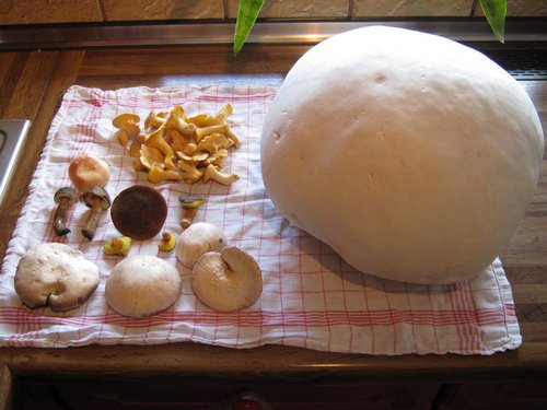 Der schöne Champignon aus dem Wald hatte einen Durchmesser von 28 Zentimetern. Dazu kam noch mein bester Pfifferlingsfund seit Jahren: es waren genau 904 Gramm.
