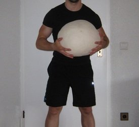 Foto: Eher selten sieht man einen Riesenbovist in dieser Größe dermaßen makellos. Fast immer setzen die Schnecken diesen Appetithappen arg zu. Auf dem unteren Foto sehen wir Michael - zumindest seinen Corpus - mit dem Pilzballon. Sieht das nicht sportlich aus? (2 Fotos © Michael/Privat)